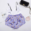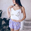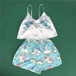 Une tenue licorne légère : le pyjashort licorne. Un haut à bretelles et un short pour un pyjama licorne unique.